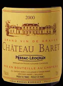 Après avoir quitté Bordeaux, en direction des vignobles des Graves et du Sauternais, le château Baret est la première propriété que l'on rencontre sur cette route. Propriété de la famille Ballande depuis près de deux cents ans, ce cru demeure un des derniers vignobles de cette commune et résiste à l'urbanisation galopante. Philippe Castéja et le professeur Denis Dubourdieu s'occupent de développer les vins du Château BARET. Un Pessac somptueux, doté d'un beau volume en bouche, à commencer à boire sur le plaisir !